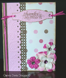 I love this Lola she is so cute and I am really liking doing the round cards! the paper is Heidi Grace which is wonderful (love the pink and Brown) I used CDS to make the round card, the Fiskars punch and some chip board ribbon and bling. There is also some Diamond glaze on her drink. I left the inside blank cause this was a card for Kala Cota to give her daughter for her 21st birthday and she wanted to do the sentiment on the insideSunday, June 14, 2009
